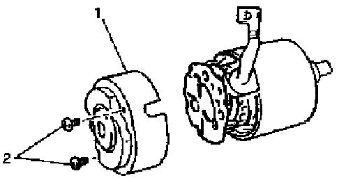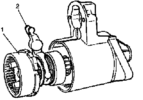5. Remove through bolts (1) shown in the figure, then separate reduction gear assembly (2) from starting motor assembly.