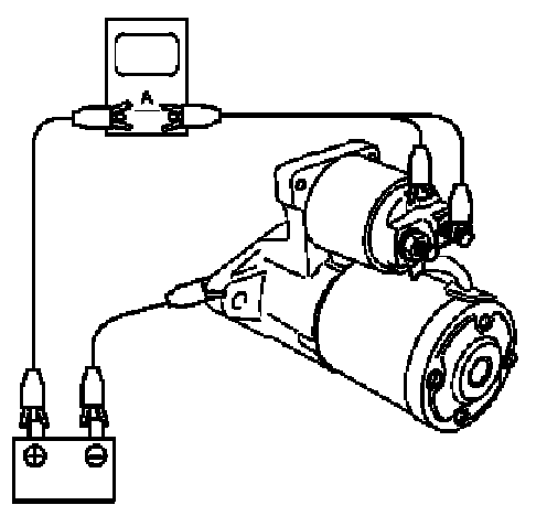 2. Check that starter rotates smoothly and steadily with pinion moving out. Check that ammeter indicates specified current.