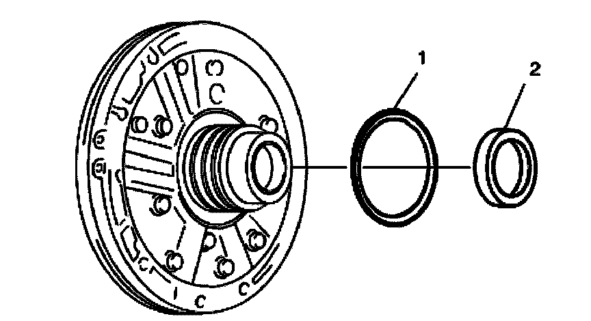 38. Remove thrust bearing race No.1 (1) and thrust bearing race No.10 (2) from oil pump assembly.