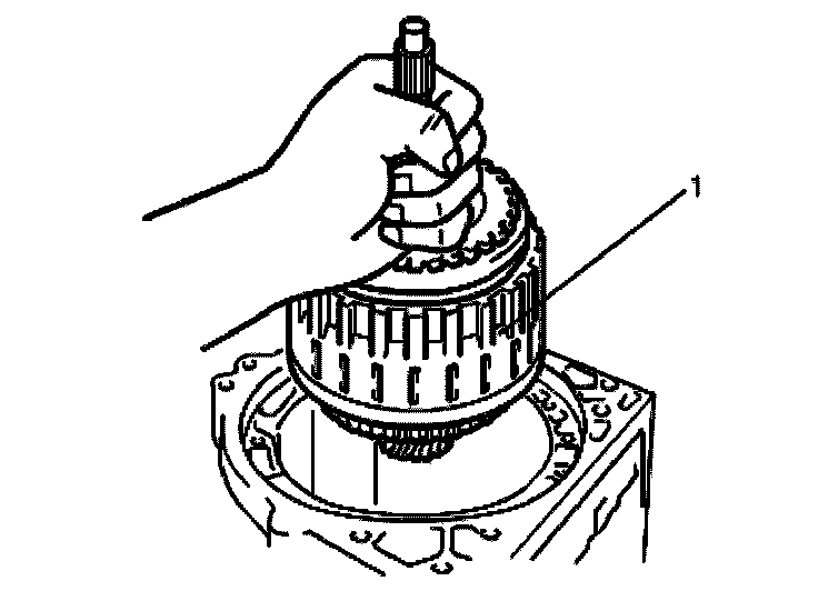 39. Remove clutch drum and input shaft assembly (1) from transmission case.