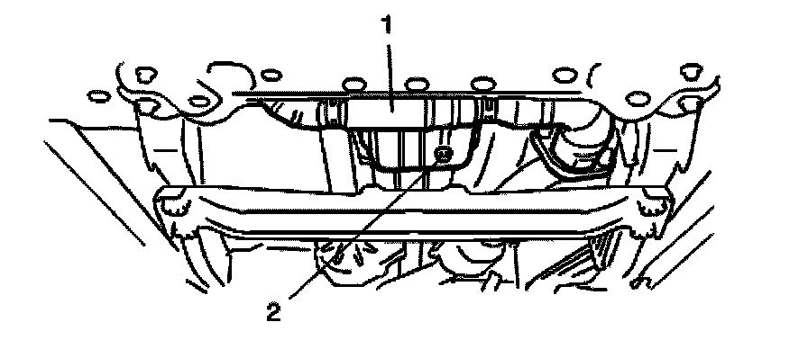 4. Remove drain plug (2) and drain A/T fluid.