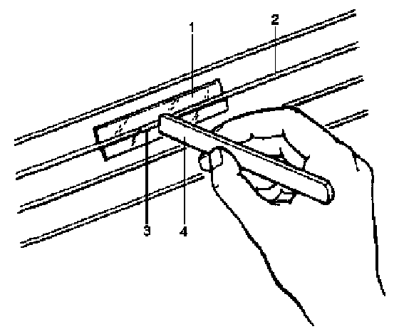 3. Apply commercially-available repair agent (3) with a fine-tip brush (4).
