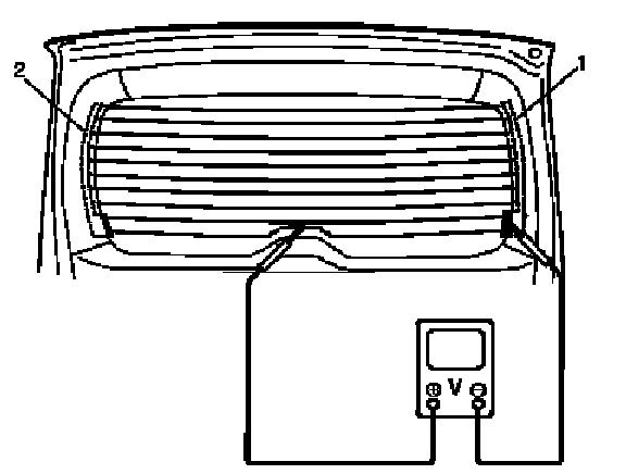 4. Touch voltmeter negative (-) lead to defogger wire ground terminal end (1).