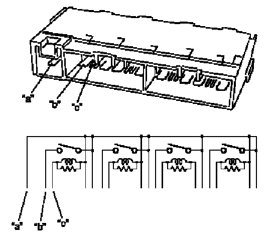 4. Check that there is continuity between terminals "a" and "b" when a 12 V battery is connected to terminals "a" and "c". If malfunction is found, replace it with a new one.