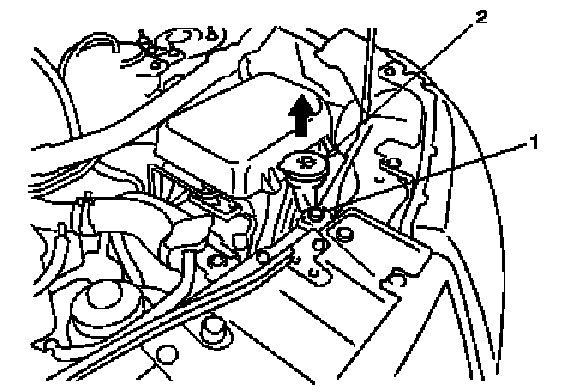 4. Remove grommet (1) and upper part (2) of washer tank.