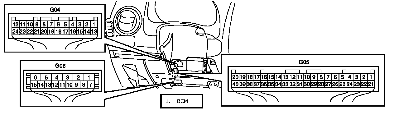 BCM Connectors(Viewed From Harness Side):