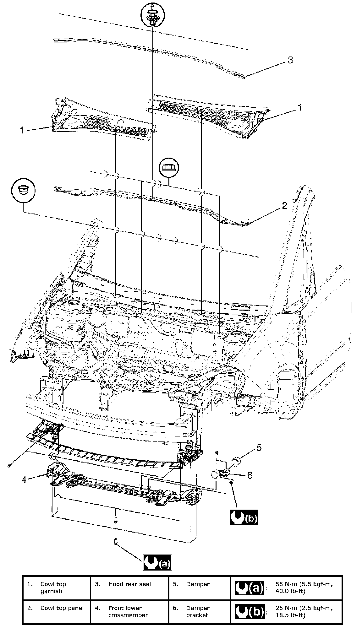 Cowl Top And Front Lower Crossmember Components: