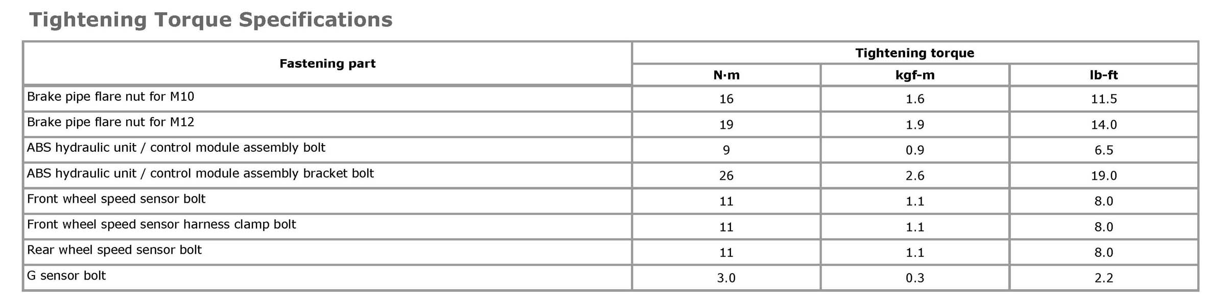Tightening Torque SpecificationsNOTE: The specified tightening torque is also described in the following. ABS (ESP(R)) Hydraulic Unit / Control Module Assembly Components