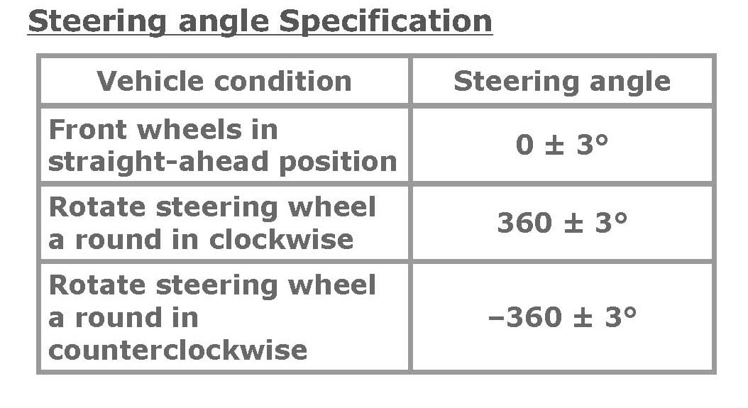 Steering angle Specification