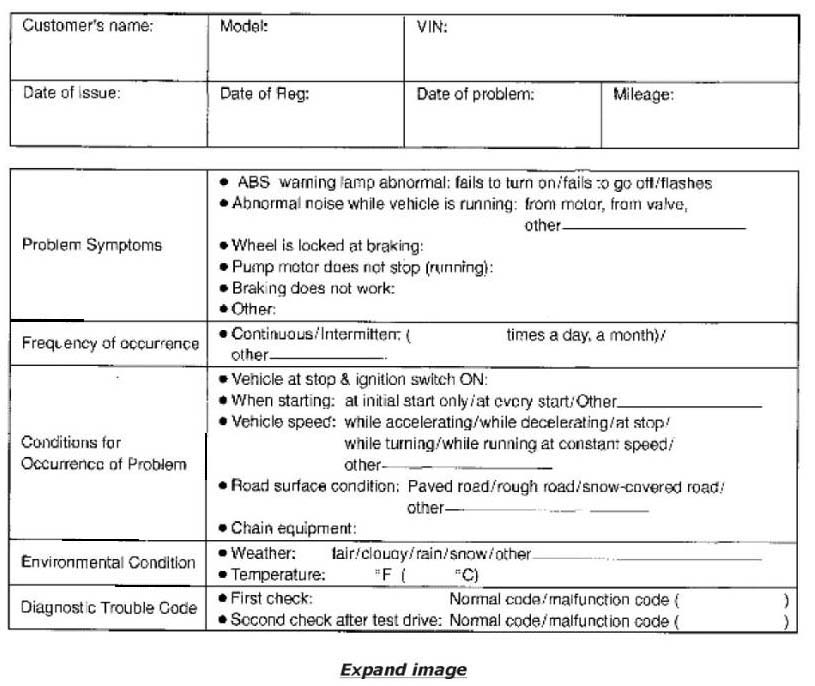 Record details of the problem (failure, complaint) and how it occurred as described by the customer. For this purpose, use of such a questionnaire form as shown in the following will facilitate collecting information to the point required for proper analysis and diagnosis.