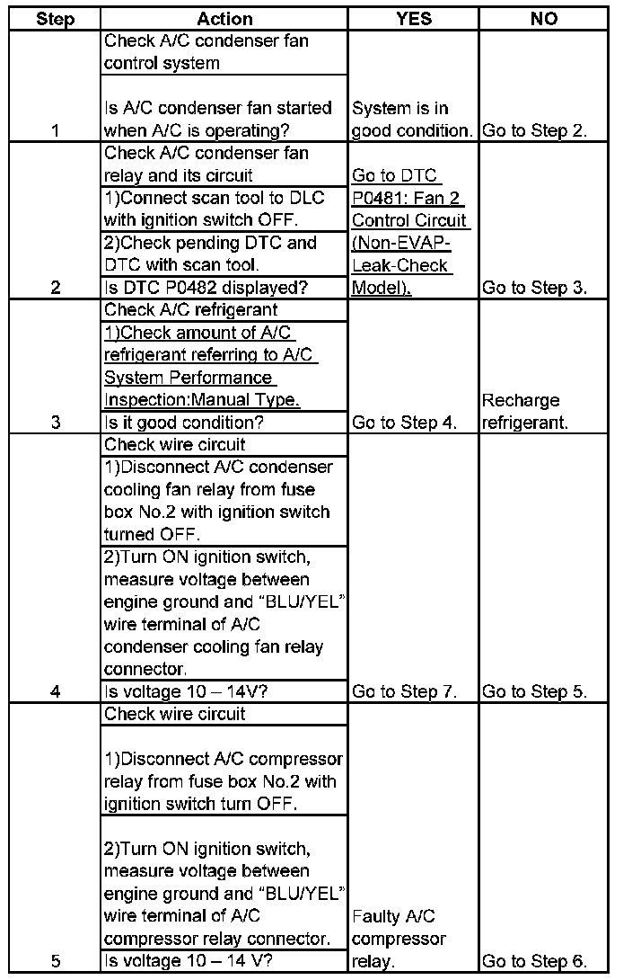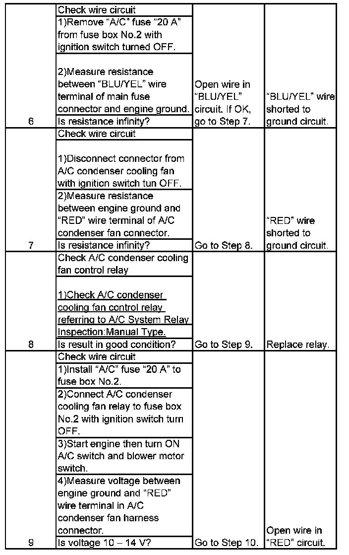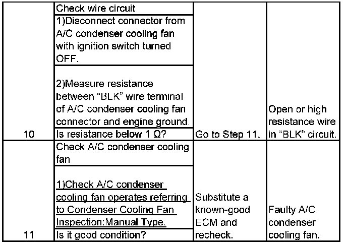 A/C Condenser Cooling Fan Control System Inspection