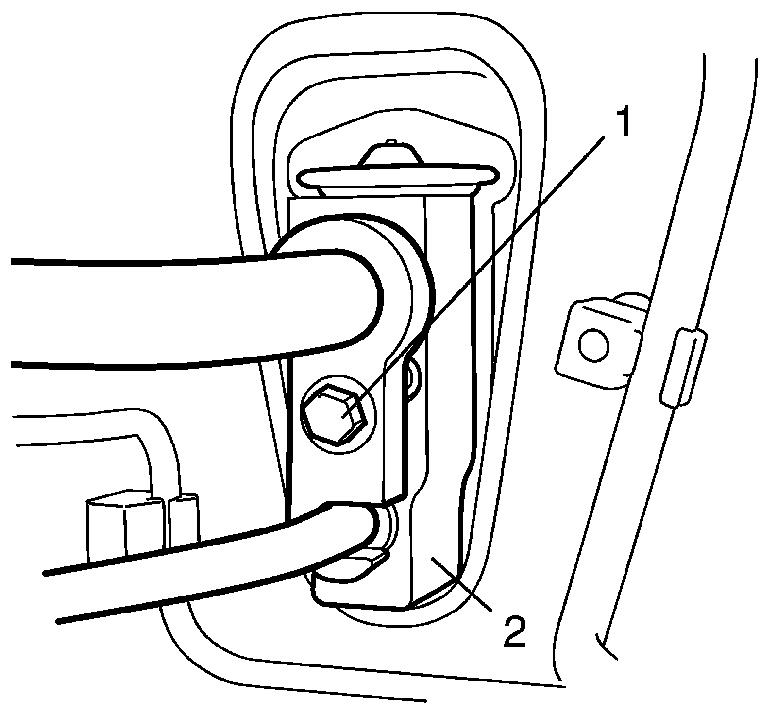 5. Loosen a bolt (1) and remove pipes from expansion valve (2).