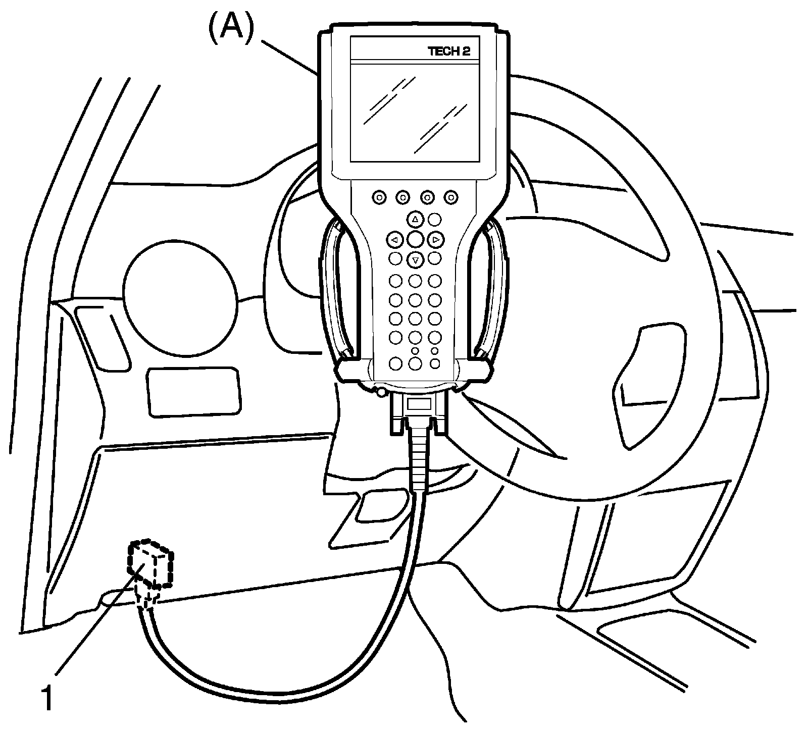 2. Connect SUZUKI scan tool to data link connector (DLC) (1) located on underside of instrument panel at driver's seat side.