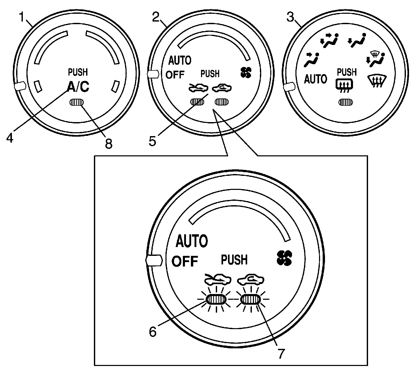 ^ Air flow selector (3) is AUTO position
