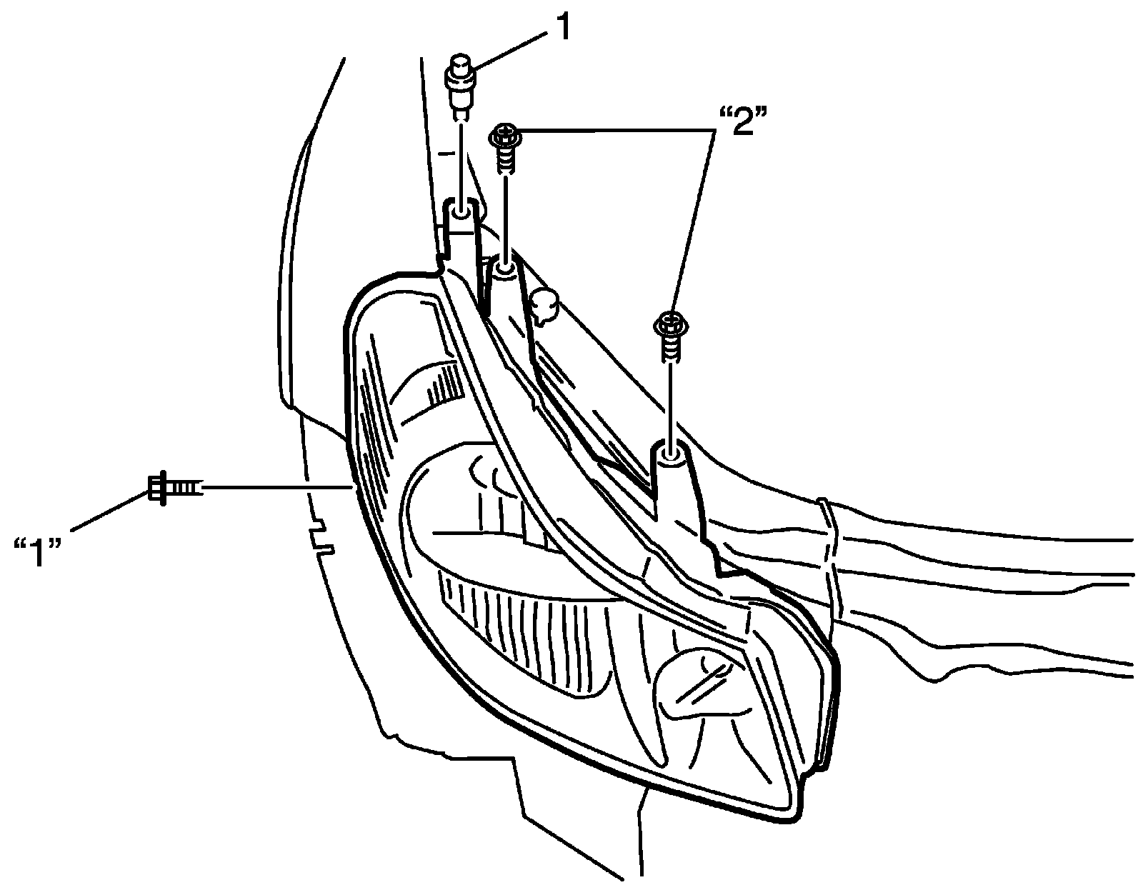 ^ Install headlight mounting bolts and clip (1), and then tighten headlight mounting bolts ("1"-"2") according to numerical order as shown in figure.