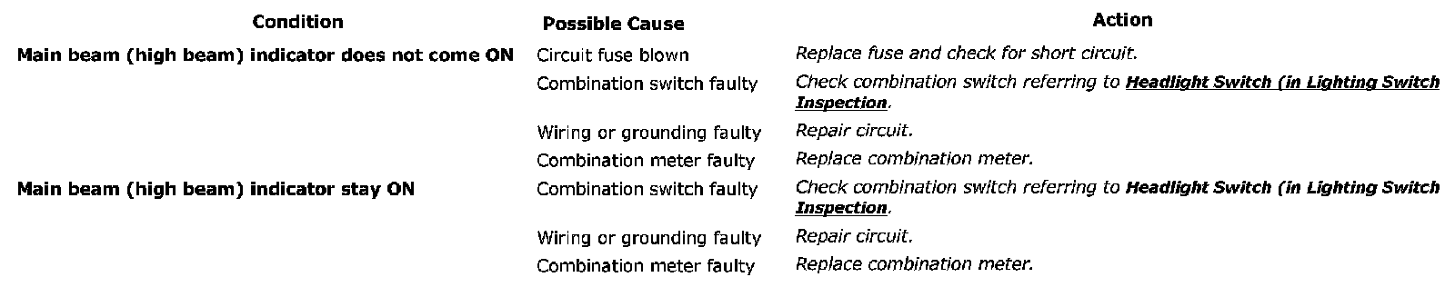 Main Beam (High Beam) Indicator Symptom Diagnosis: