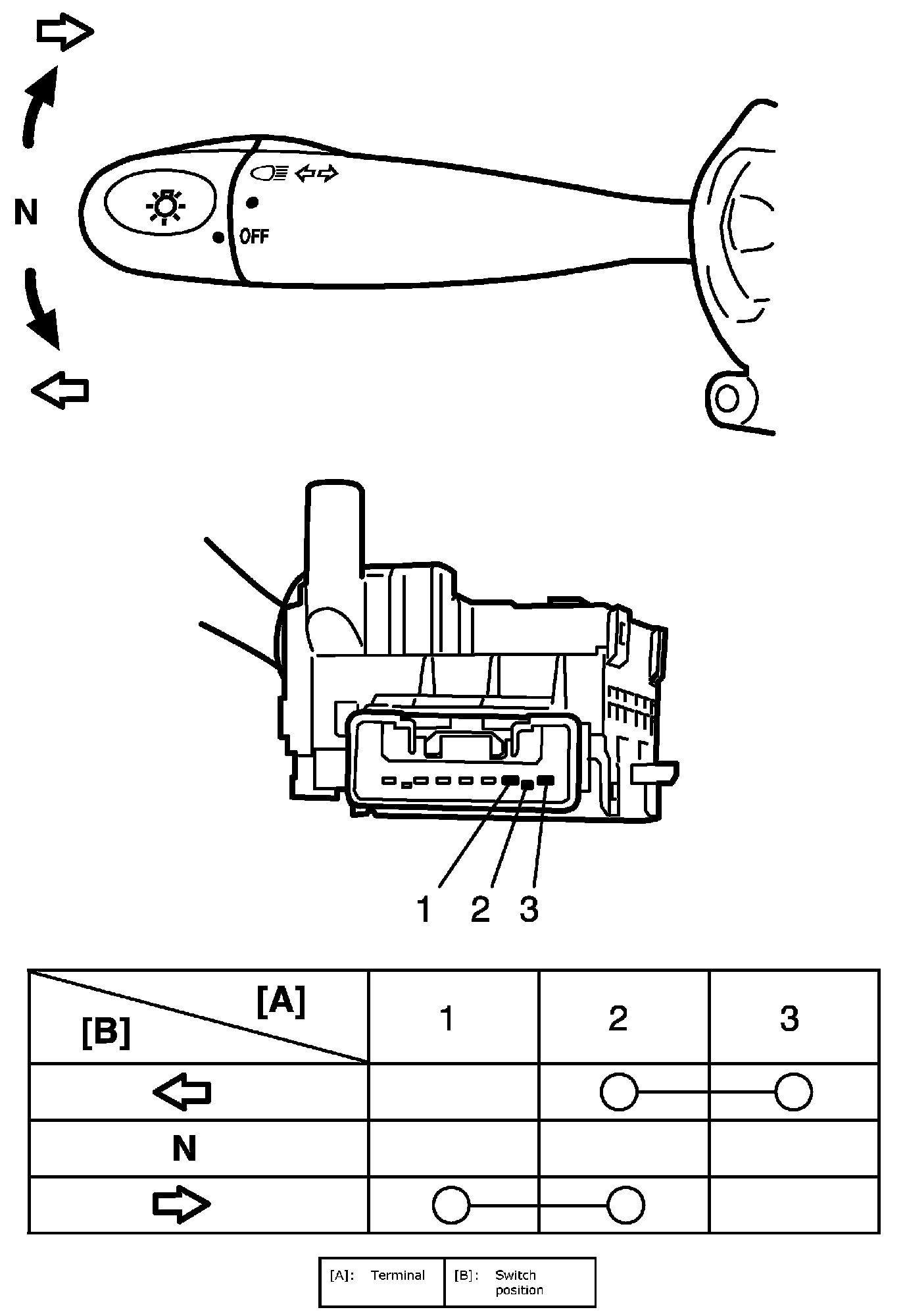Check for continuity between terminals at each switch position. If check result is not as specified, replace switch.