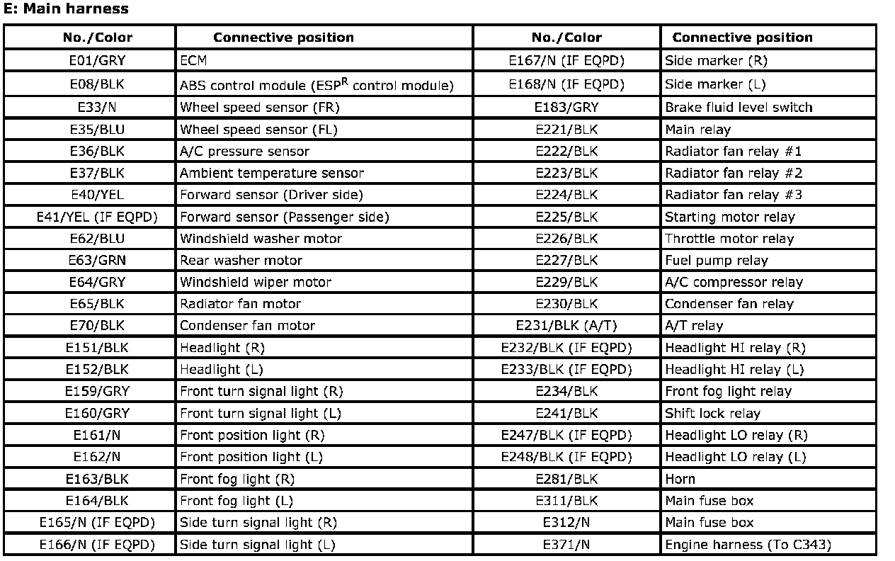 E: Main Harness Index: