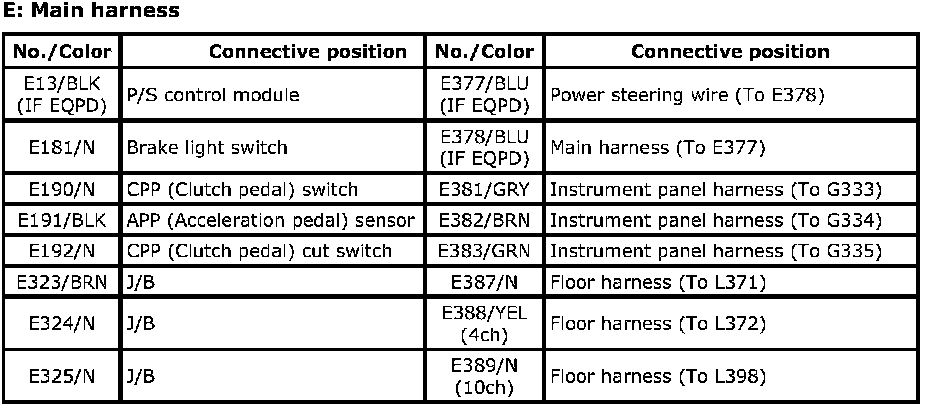 E: Main harness Index: