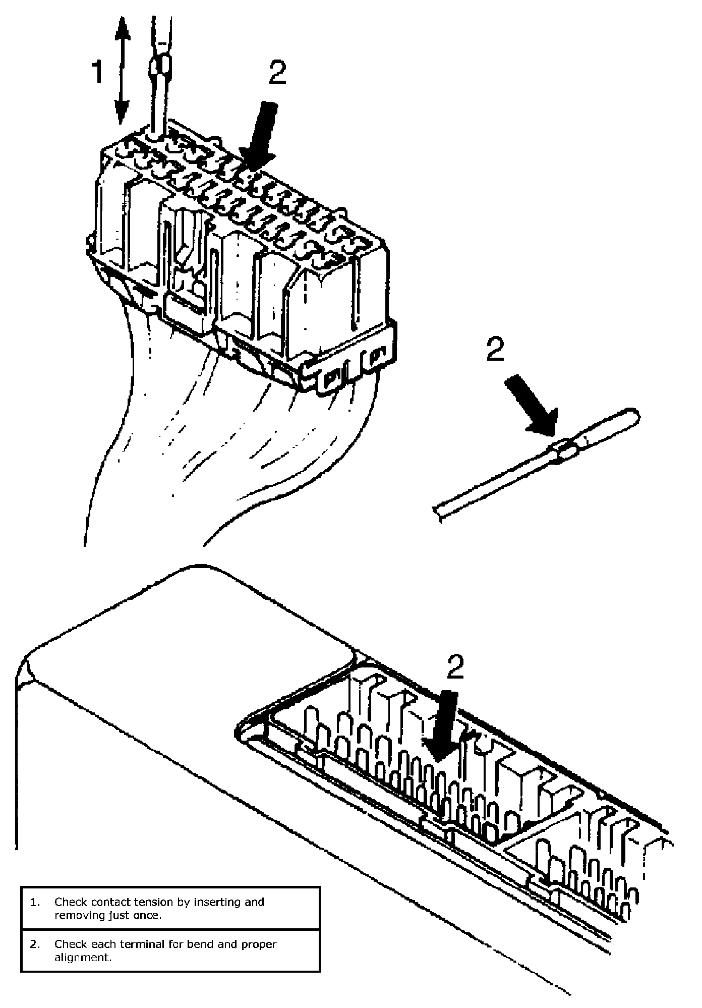 Check each connector terminal in problem circuits carefully to ensure good contact tension by using the corresponding mating terminal.