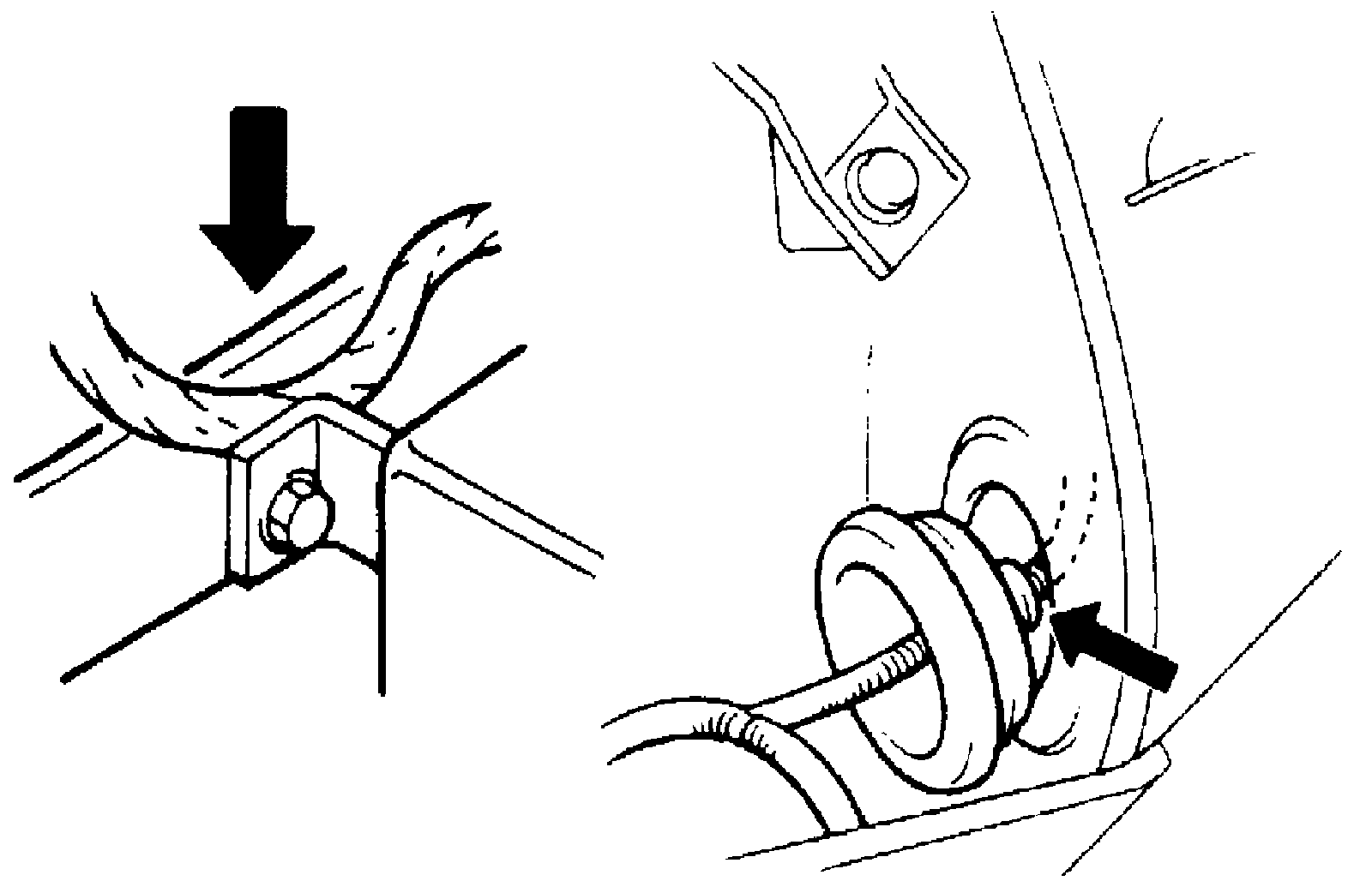 ^ Wiring broken inside the insulation. This condition could cause continuity check to show a good circuit, but if only 1 or 2 strands of a multi-strand-type wire are intact, resistance could be far too high.