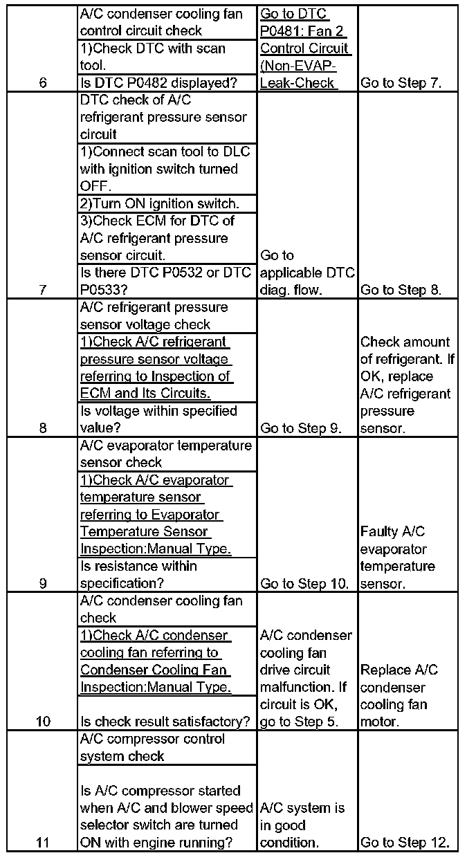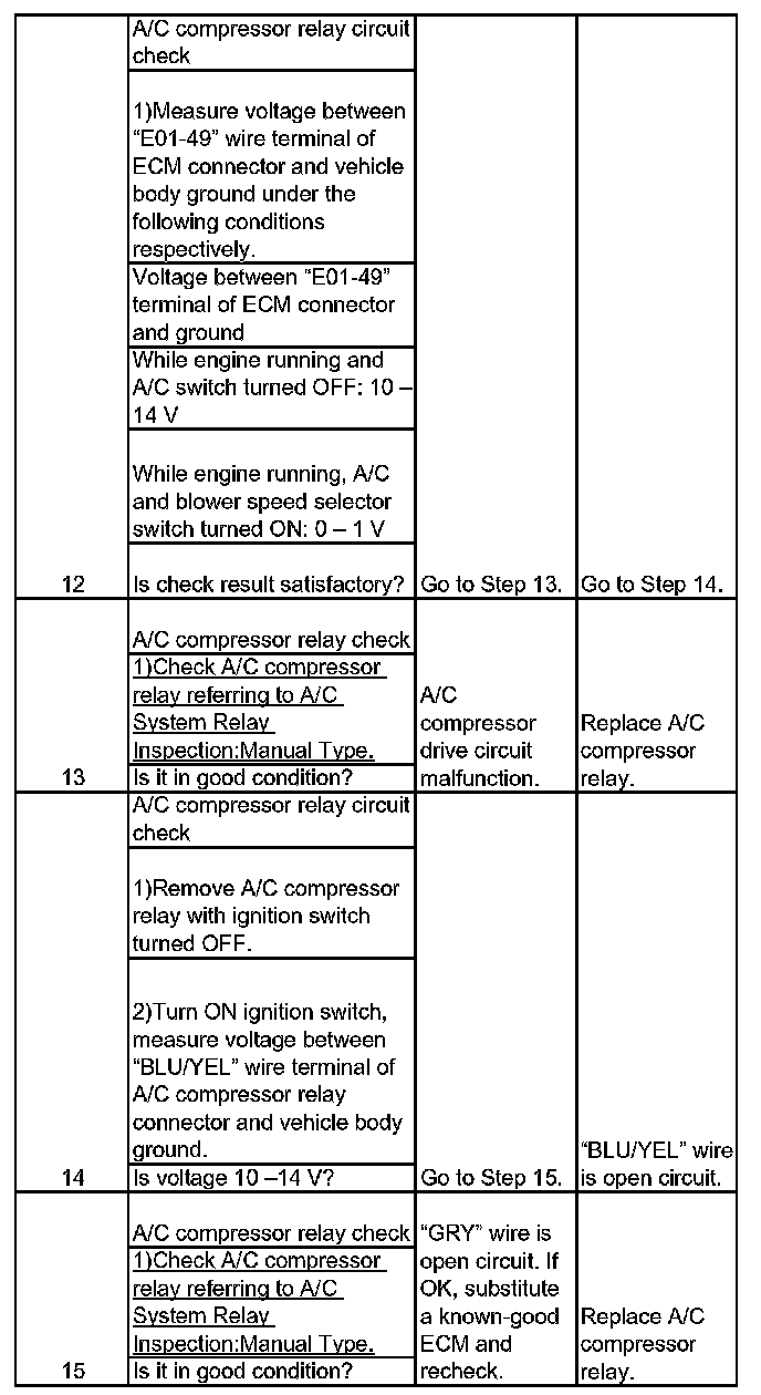 ^ When A/C evaporator outlet air temp. is below 2 °C (35.6 °F), A/C remains OFF ("E01-49" terminal voltage becomes 10 - 14 V). This condition is not abnormal.