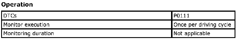 Refer to DTC P0111: Intake Air Temperature Sensor 1 Circuit Range / Performance. P0111