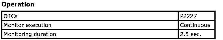 Refer to DTC P2227: Barometric Pressure Circuit Range / Performance (EVAP Leak Check Model). P2227