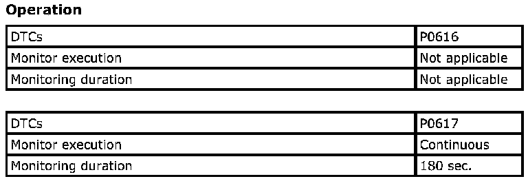 Refer to DTC P0616 / P0617: Starter Relay Circuit Low / High. P0616