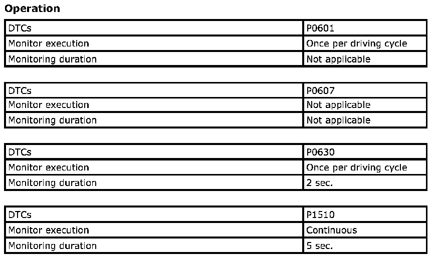 ^ ECM internal circuit / memory (P0601, P0607, P0630, P1510)