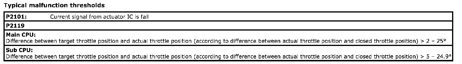 Refer to DTC P2101: Throttle Actuator Control Motor Circuit Range / Performance. P2101