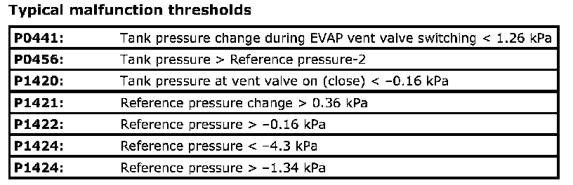 Typical Malfunction Thresholds: