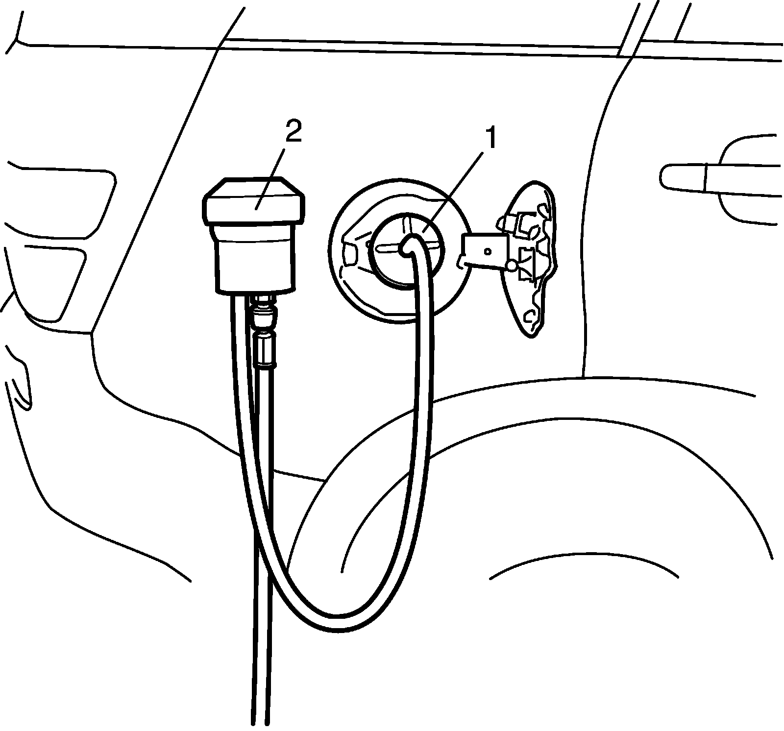 7. Connect the nitrogen/smoke hose onto the fuel cap adapter (1).