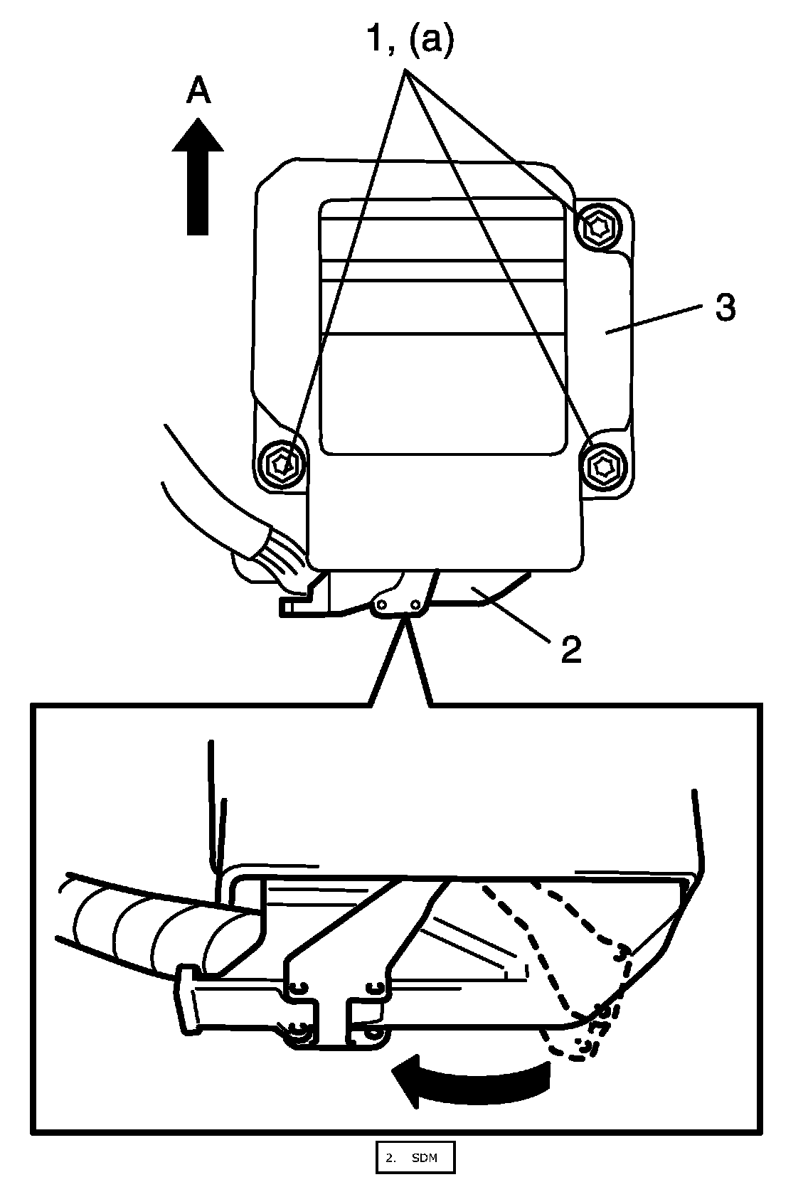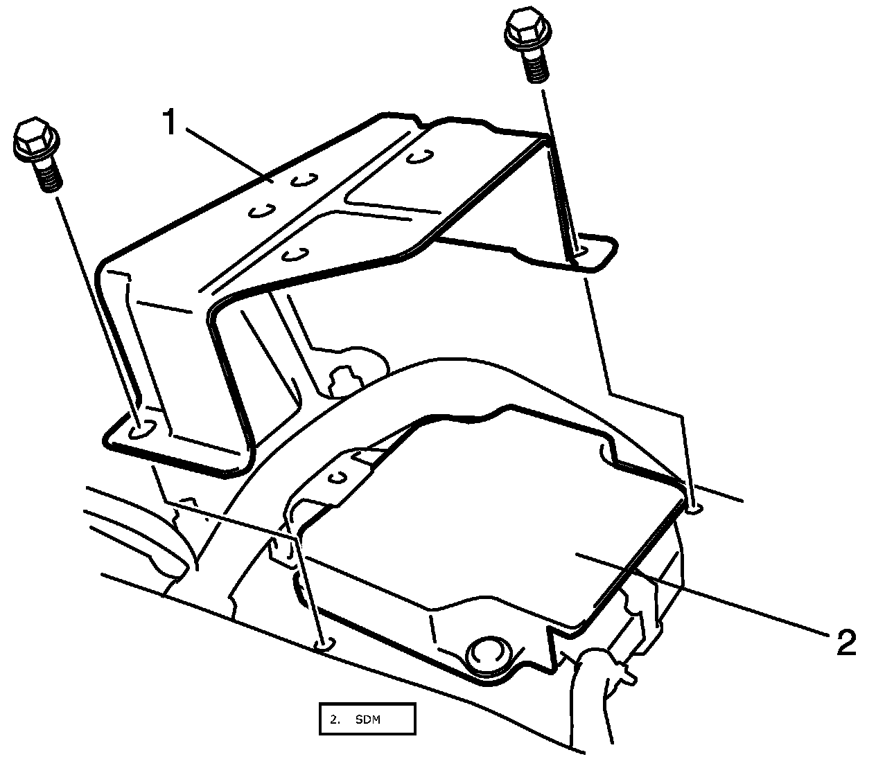 6. Remove SDM (2) from vehicle.