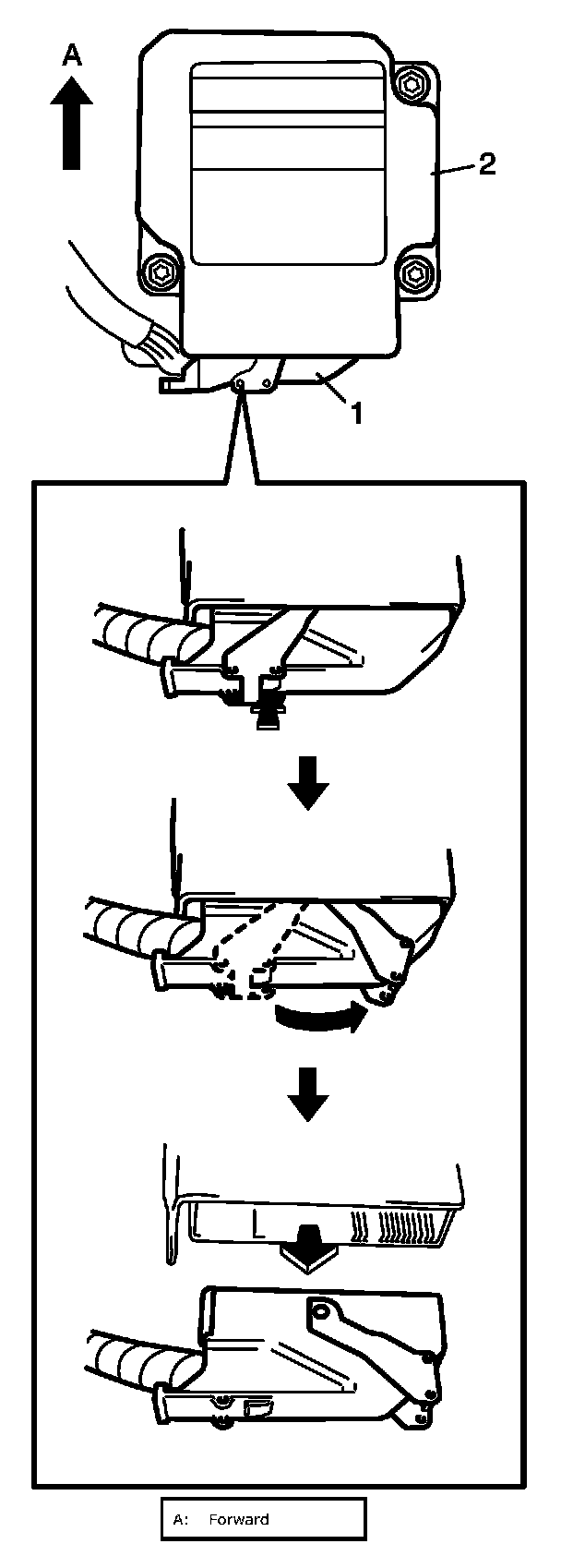 CAUTION: Ensure that arrow on the SDM is pointing toward the front of the vehicle.