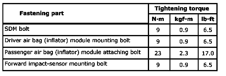 Tightening Torque Specifications: