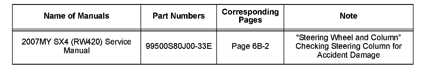 SERVICE MANUAL UPDATE: PRODUCTION CHANGE OF STEERING COLUMN
