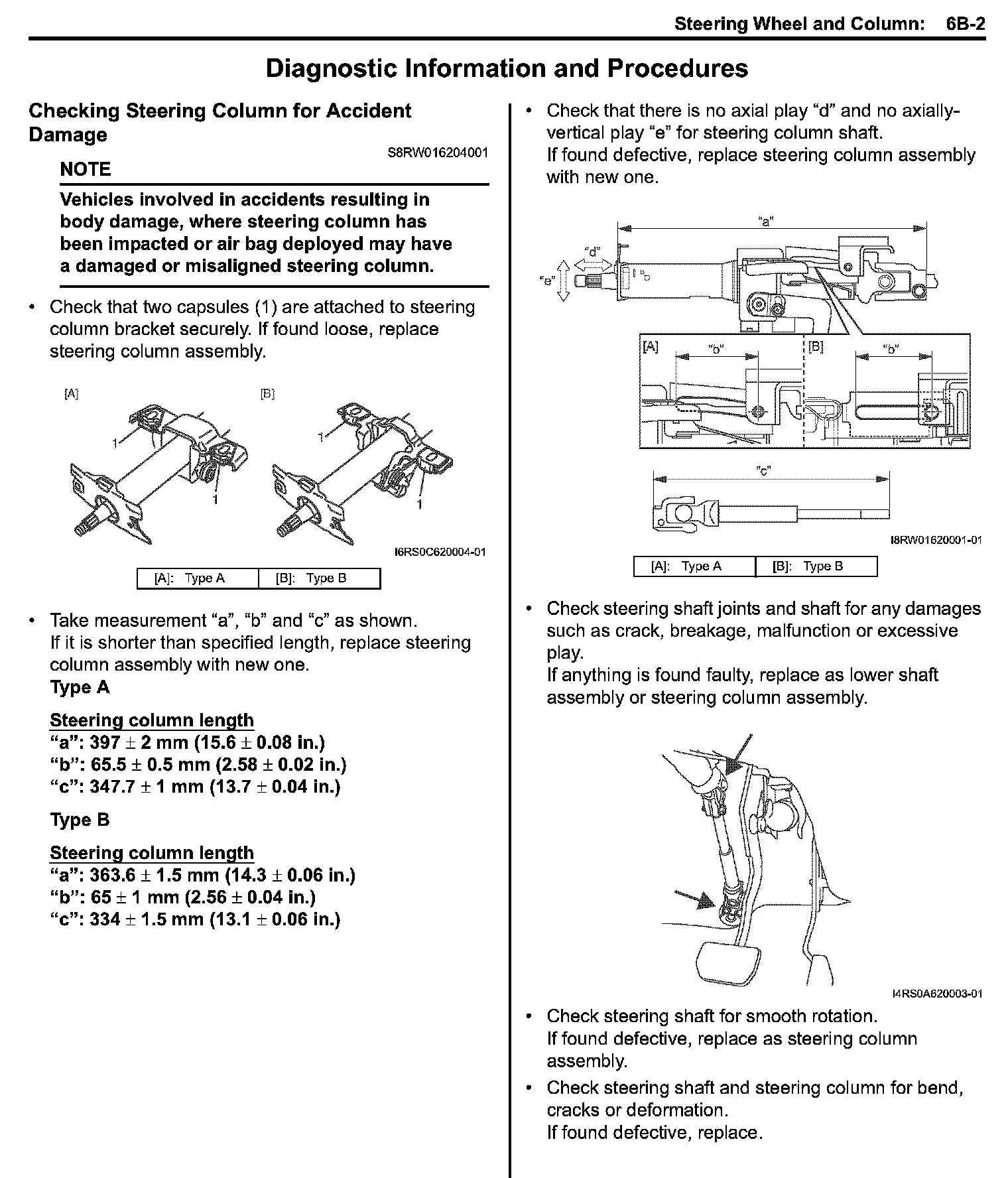 When checking the steering column for accident damage be sure to use the correct specifications for the type of column installed.