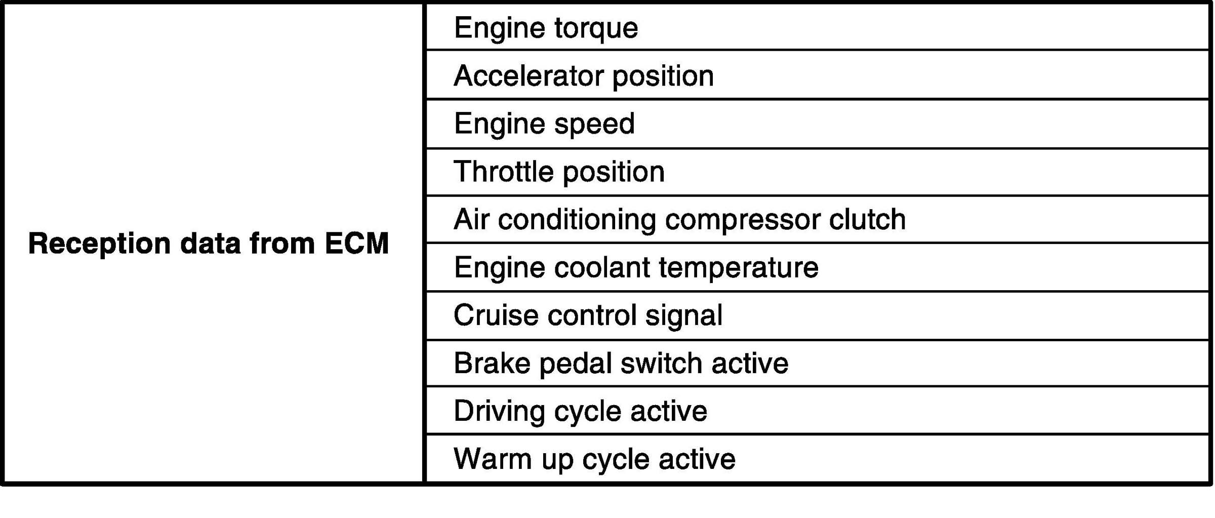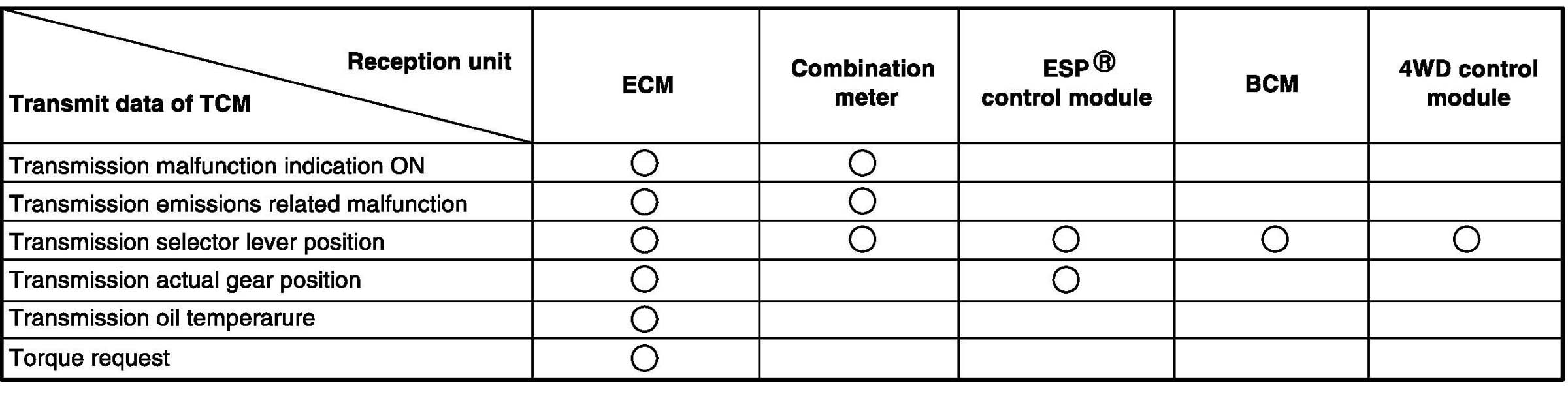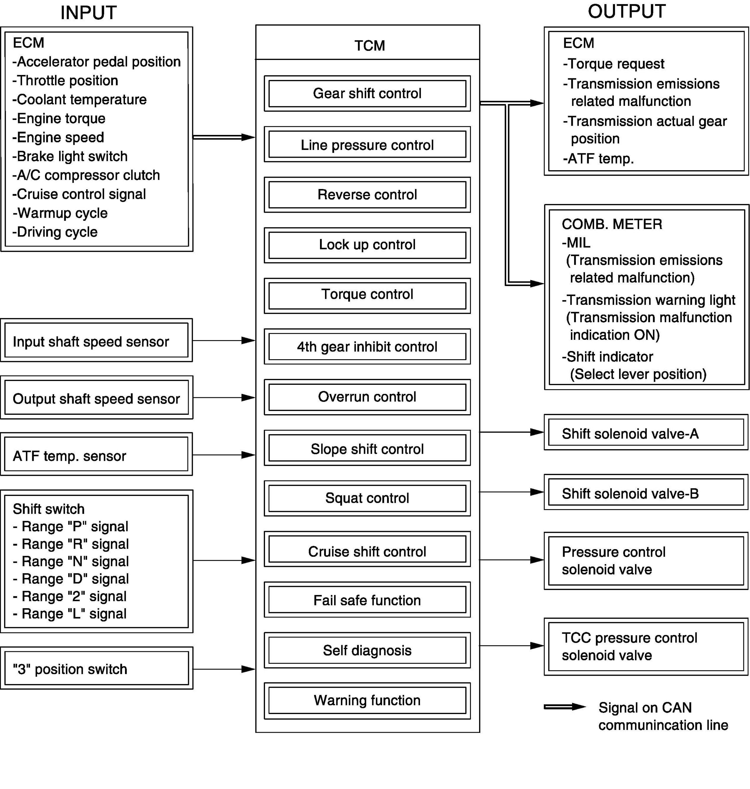 Electronic Shift Control Input / Output Table