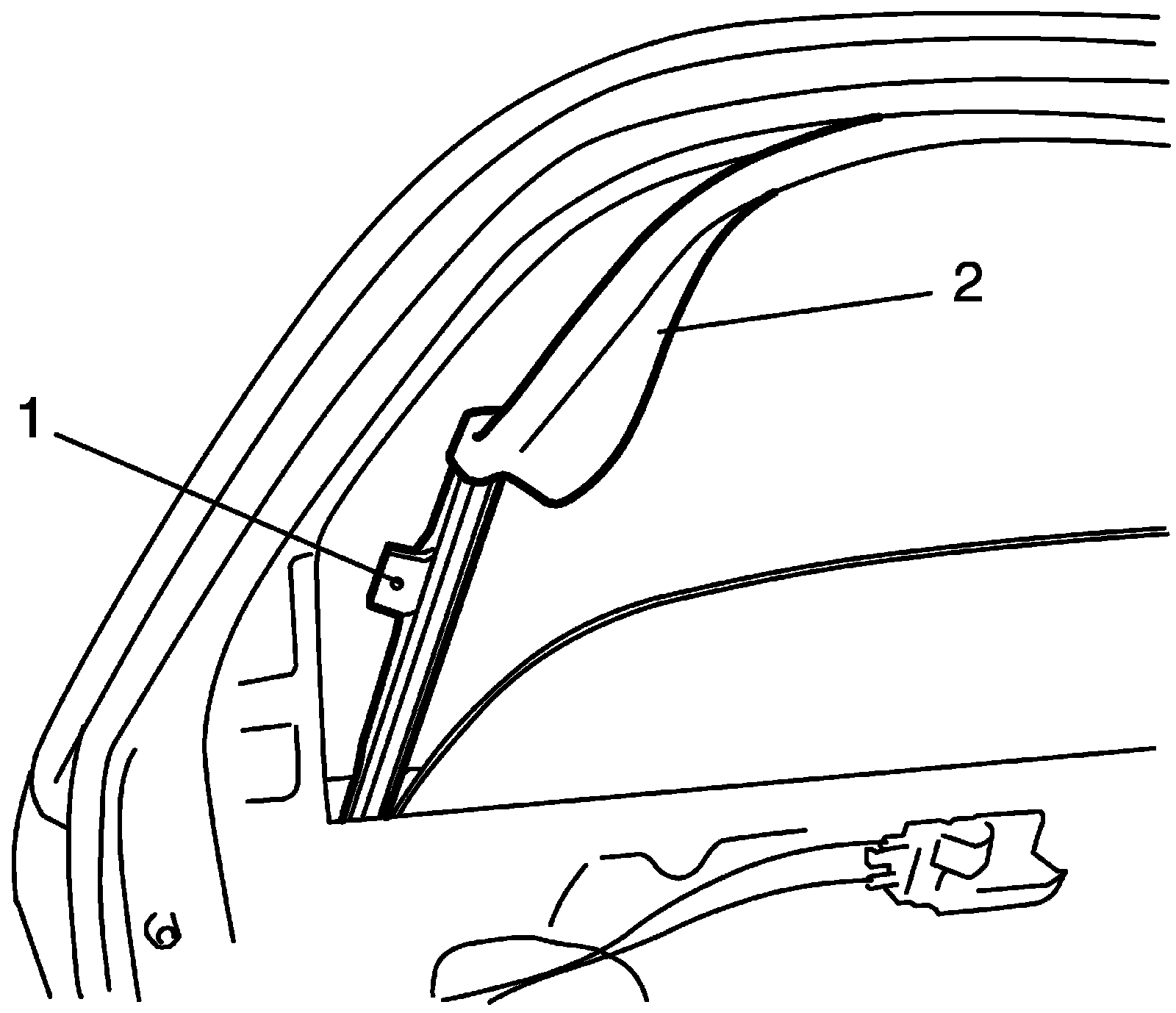 9. Detach rear part of glass run (2) with rear door sash (1).