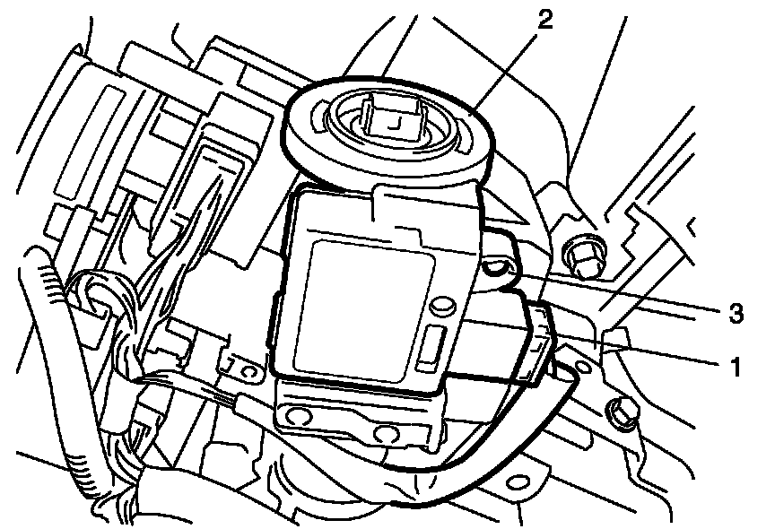 3. Remove driver air bag (inflator) module referring to Driver Air Bag (Inflator) Module Removal and Installation: Advanced Air Bag or Driver Air Bag (Inflator) Module Removal and Installation: Except Advanced Air Bag.