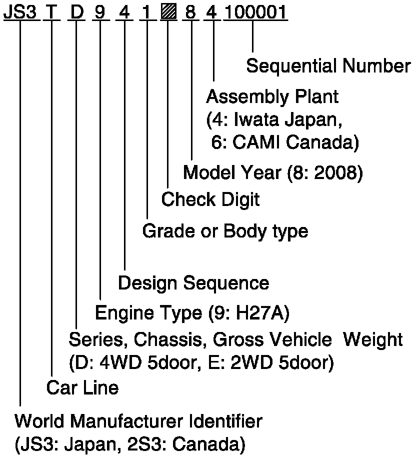 Vehicle Identification NumberThe vehicle identification number is punched on the front dash panel in engine room and it is also attached on the left front top of instrument panel depending on vehicle specification.