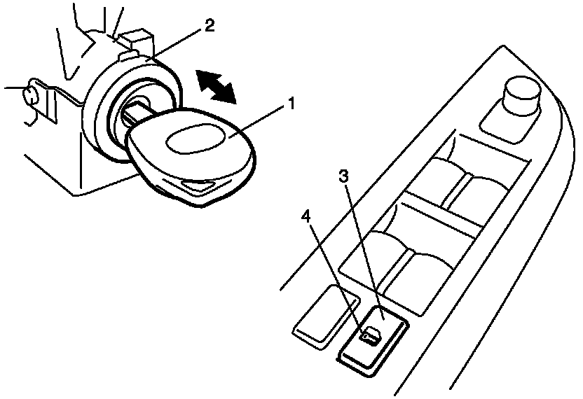 e. Push lock side (3) of driver side manual lock switch (4) 3 times.