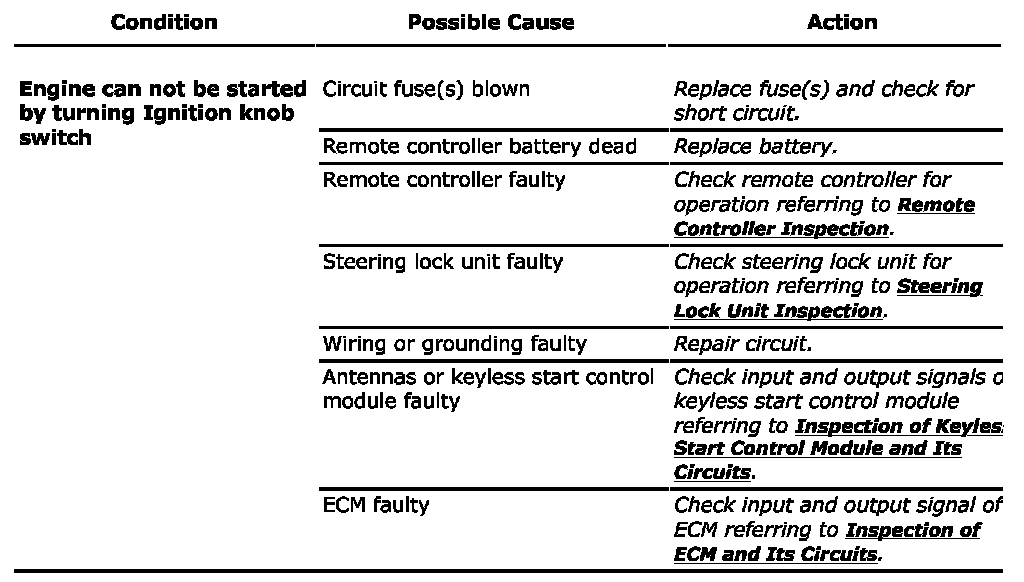 NOTE: Before performing symptom diagnosis procedure for keyless engine start system, check that engine starts by using ignition key. If it cannot be started by using ignition key, go to Engine Symptom Diagnosis.