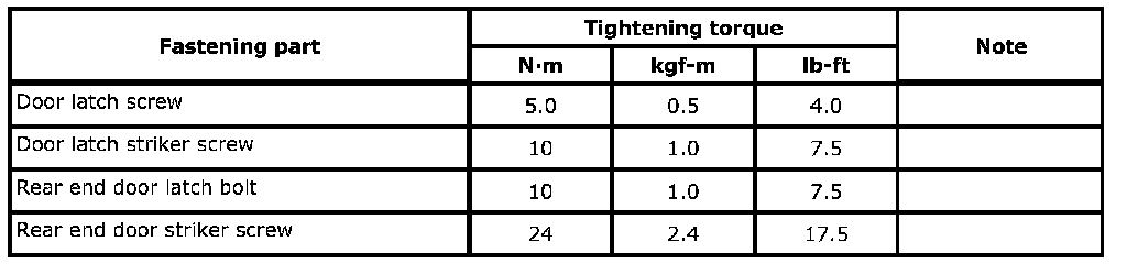Tightening Torque SpecificationsTightening Torque Specifications: