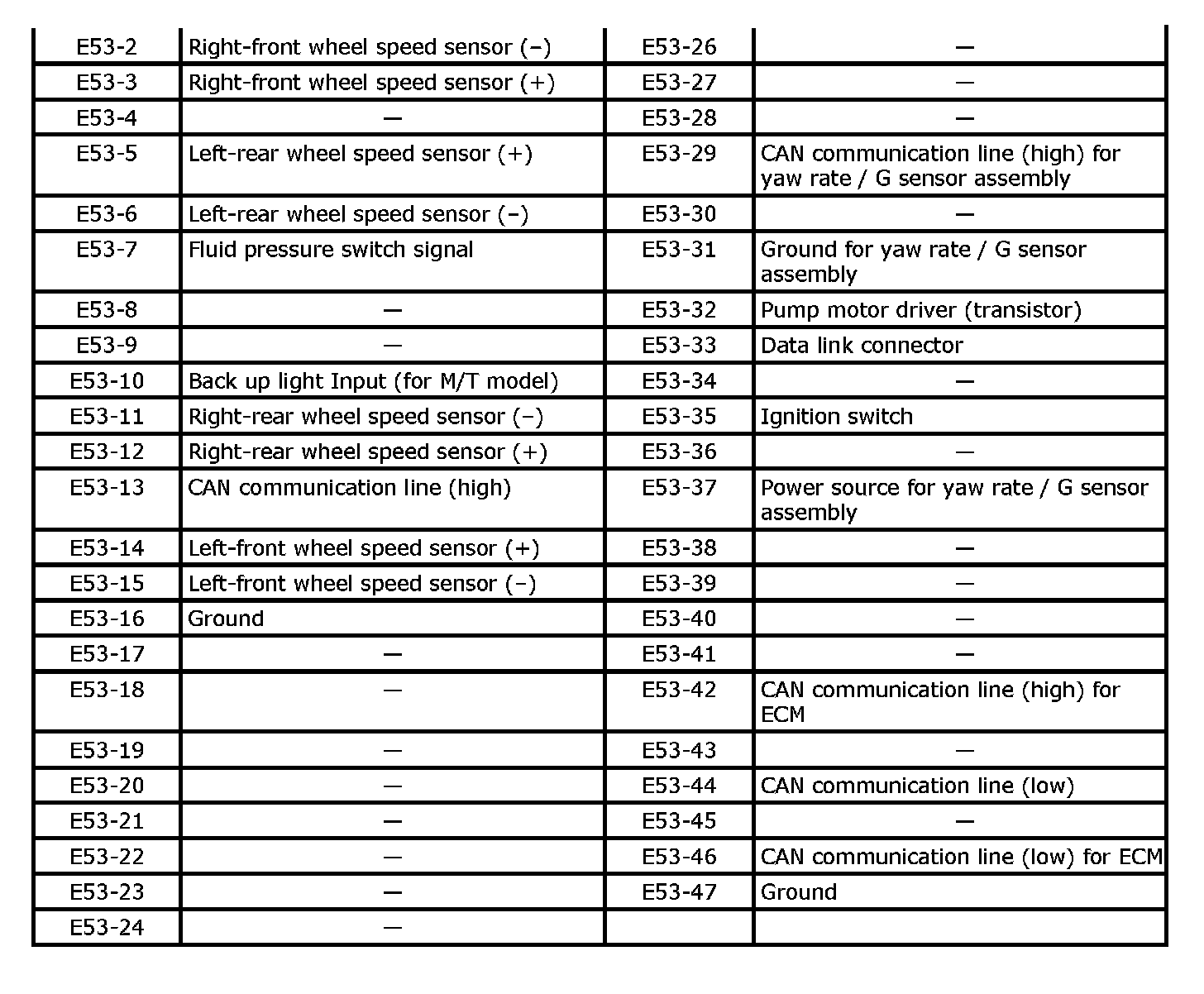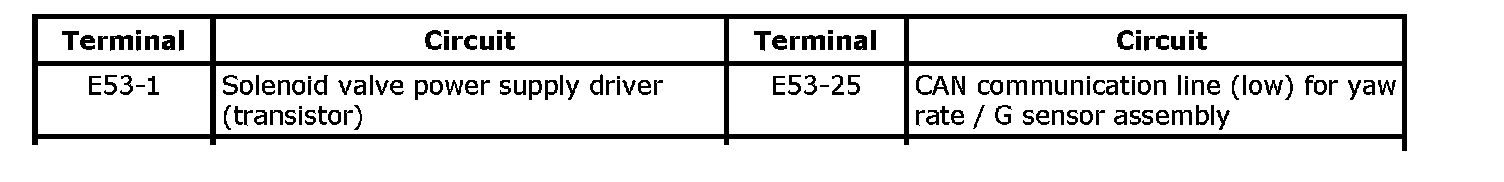 Terminal Arrangement of ESP(R) Control Module Connector (Viewed from Terminal Side)