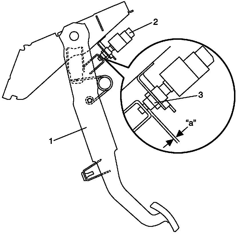 1. Install CPP switch (for cruise control) (2) to pedal bracket.