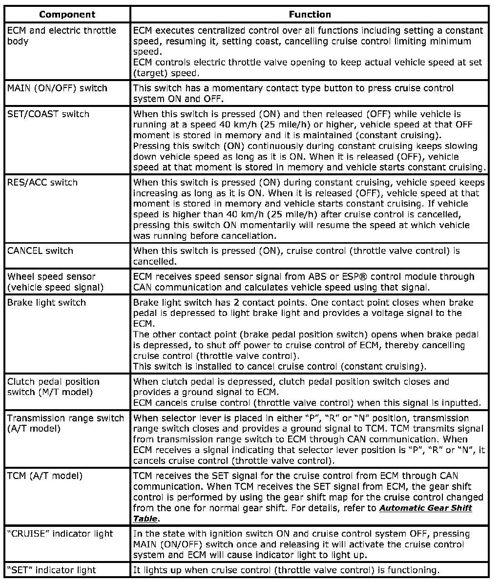 Components And Functions Of Cruise Control System: