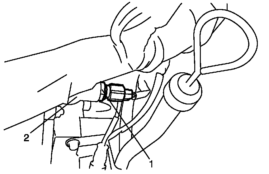 4. Remove ECT sensor (1) from water outlet cap (2).