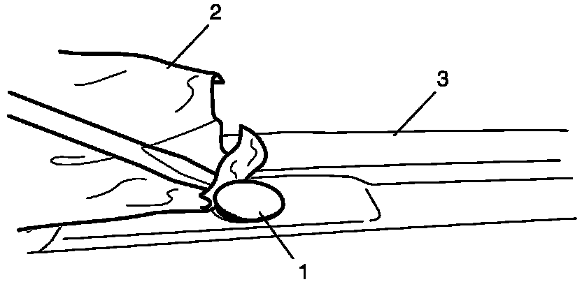 Detach sunload sensor (1) located on the driver side of the dashboard (3). Be careful not to damage the sensor and dashboard by using rag (2).
